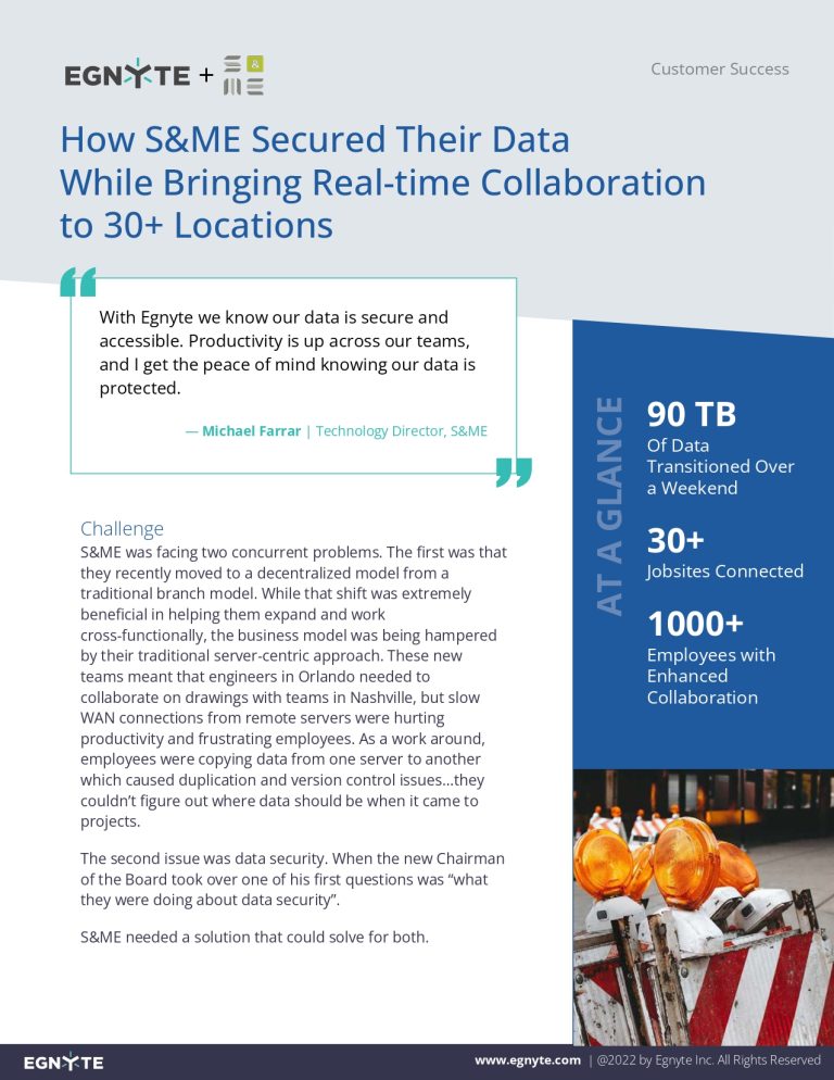 Read more about how S&ME is evolving and meeting new challenges and needs of their customers with Egnyte.